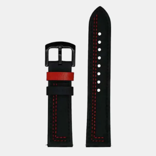- Bold Accents: This statement piece is made by the dynamic contrast the red trim offers to the black leather.