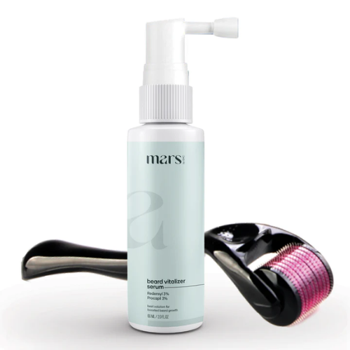 Men prefer big, thick beards, but only some are genetically predisposed to grow one. So, the Mars by GHC Beard Growth Kit is practical. This kit includes the Beard Vitalizer and Derma Roller, powerful tools that work together to foster beard growth and facial hair health.